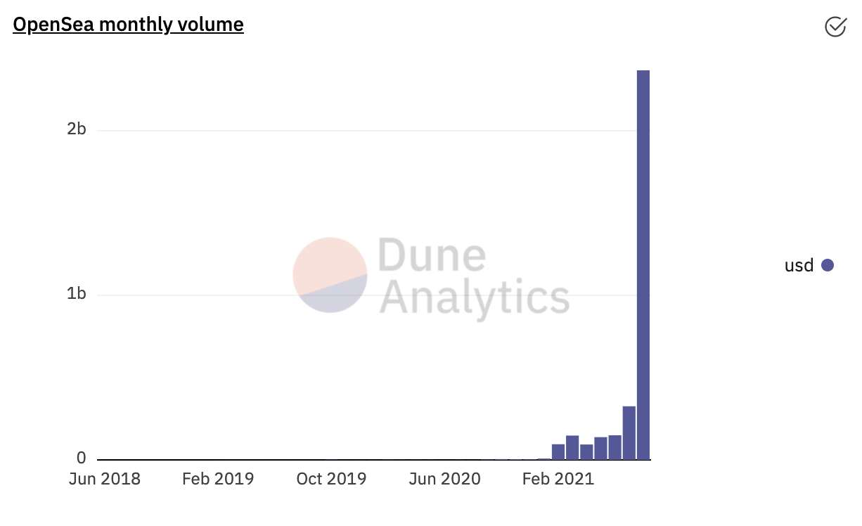 NFT sales top $2.5B in H121, and OpenSea, a leading NFT-trading platform, sees >$2bB of sales in first 27 days of August 2021 alone .. that’s double eBays’s monthly rev!